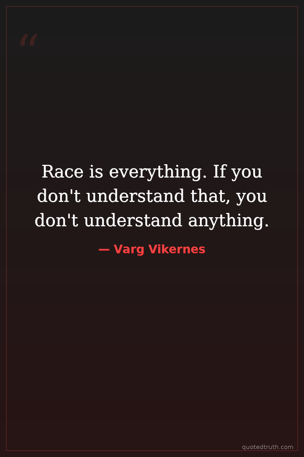 Race is everything. If you don't understand that, you don't understand anything.
