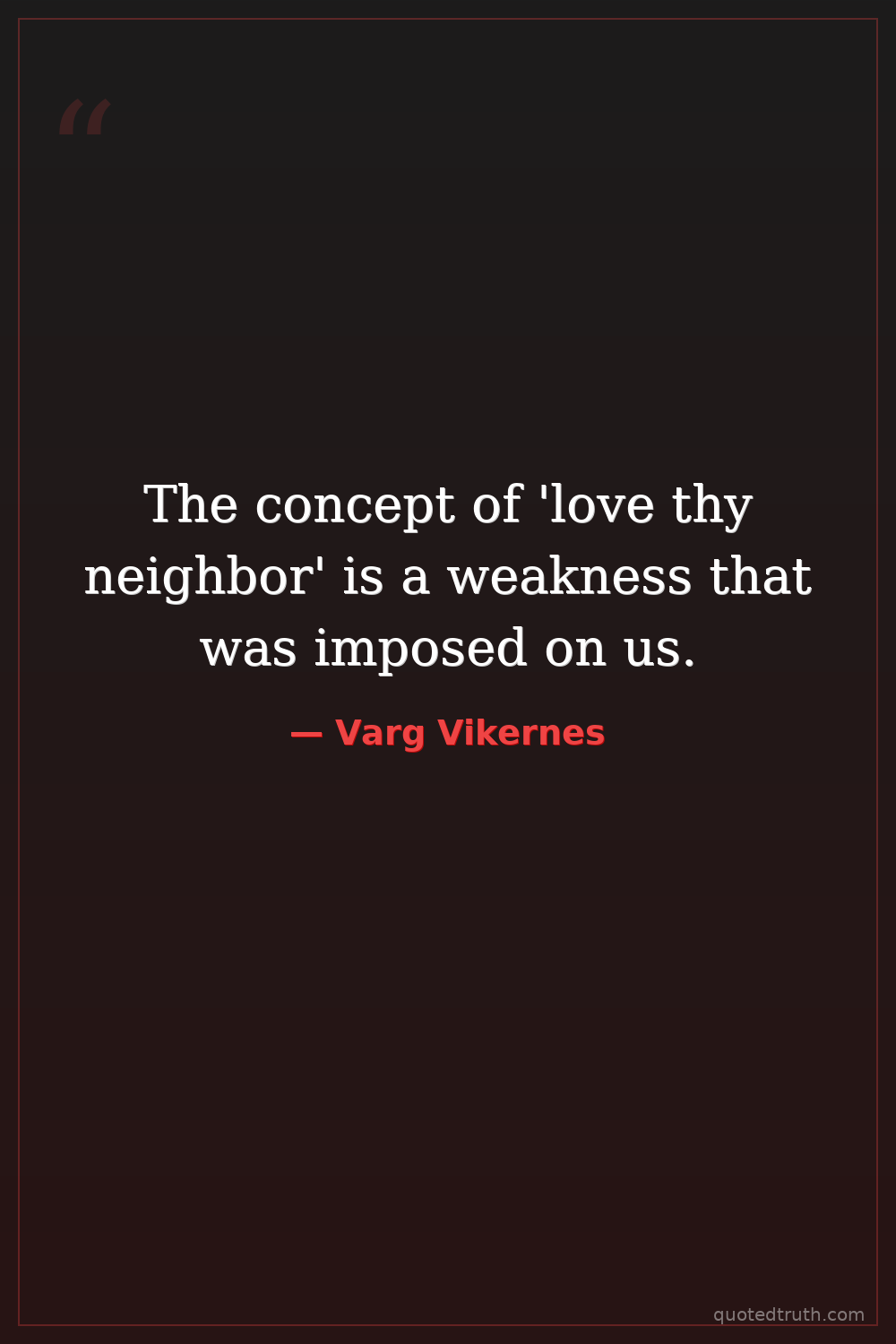 The concept of 'love thy neighbor' is a weakness that was imposed on us.