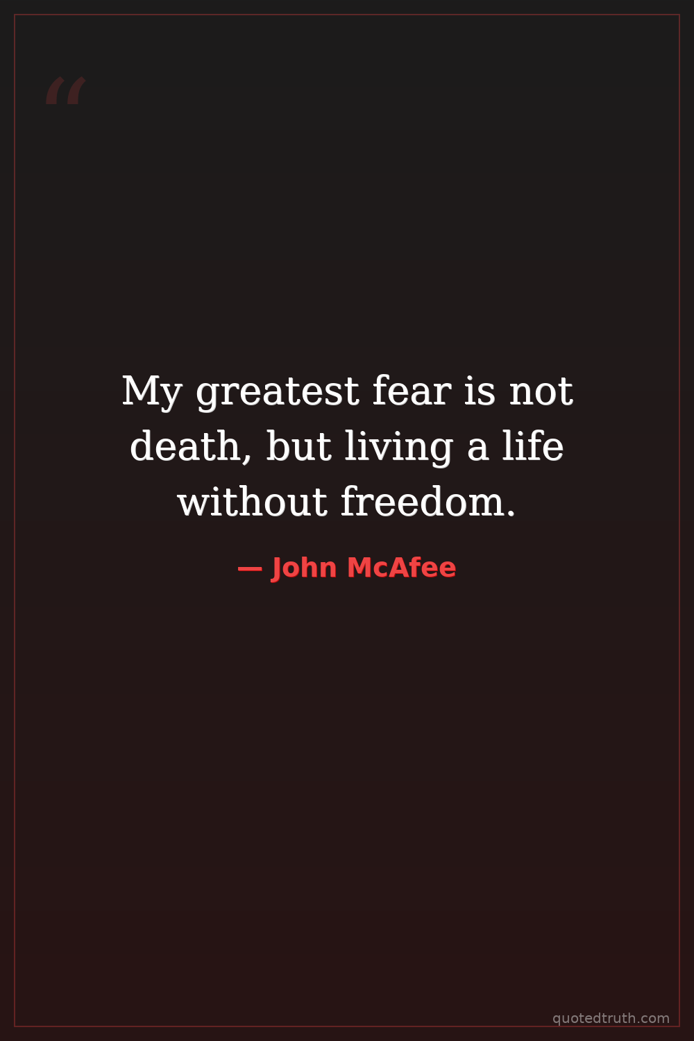 My greatest fear is not death, but living a life without freedom.