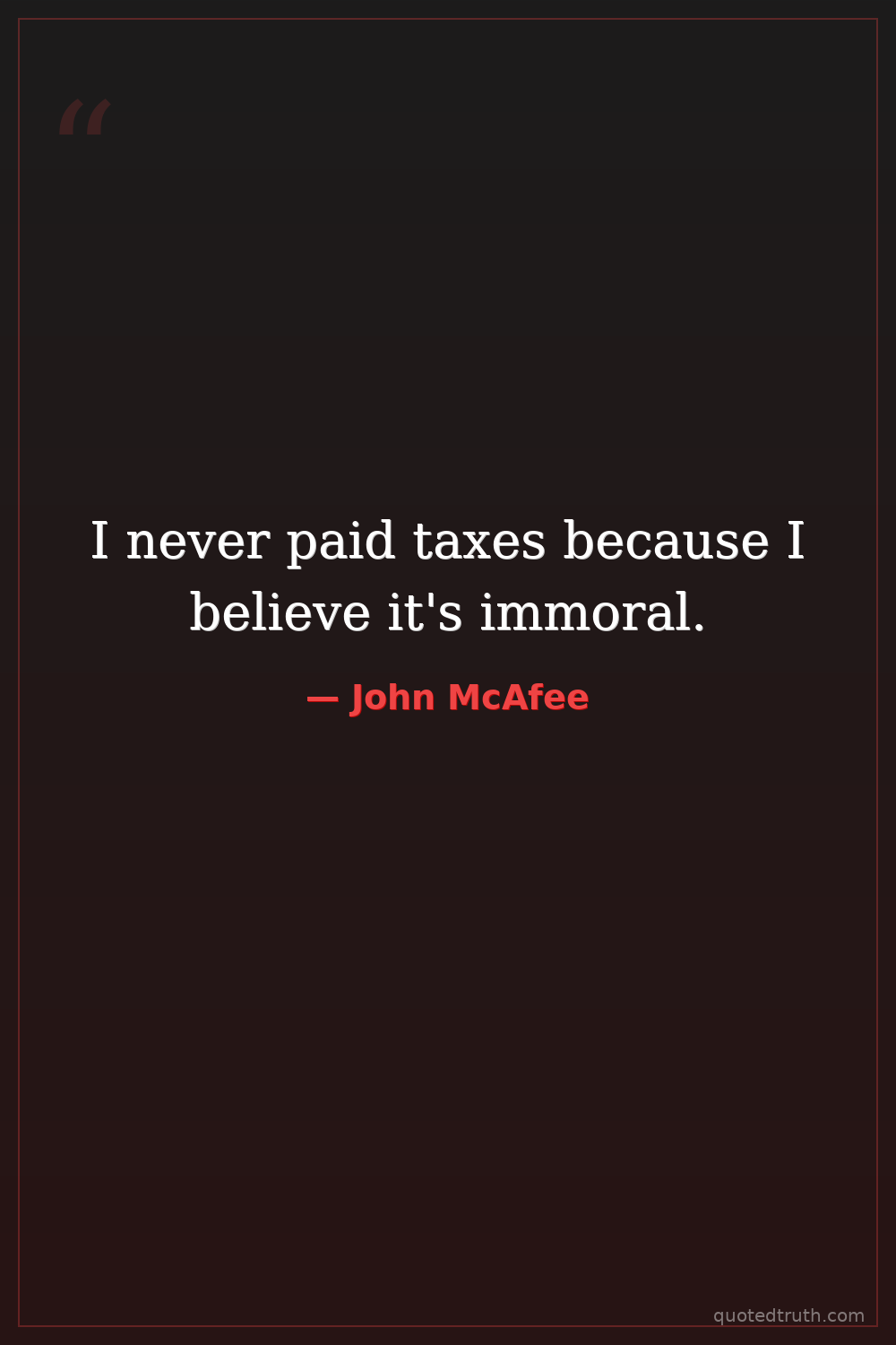 I never paid taxes because I believe it's immoral.