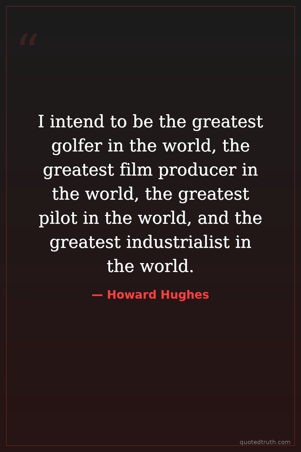 I intend to be the greatest golfer in the world, the greatest film producer in the world, the greatest pilot in the world, and the greatest industrialist in the world.