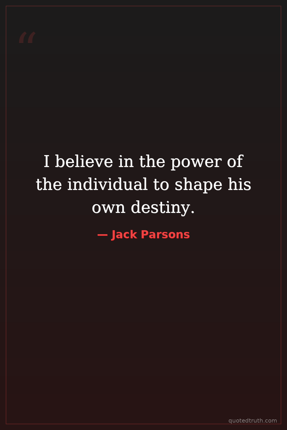I believe in the power of the individual to shape his own destiny.