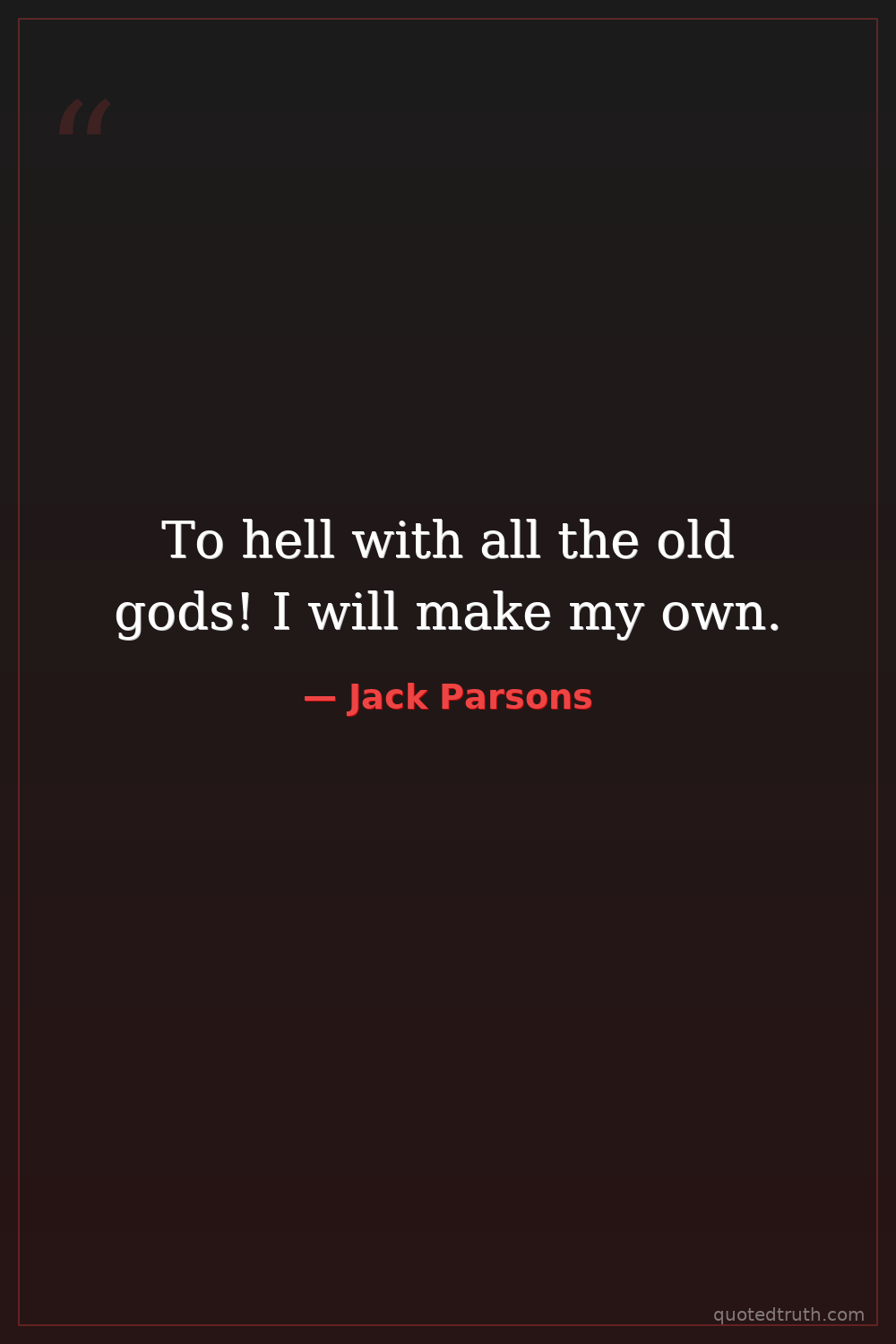 To hell with all the old gods! I will make my own.
