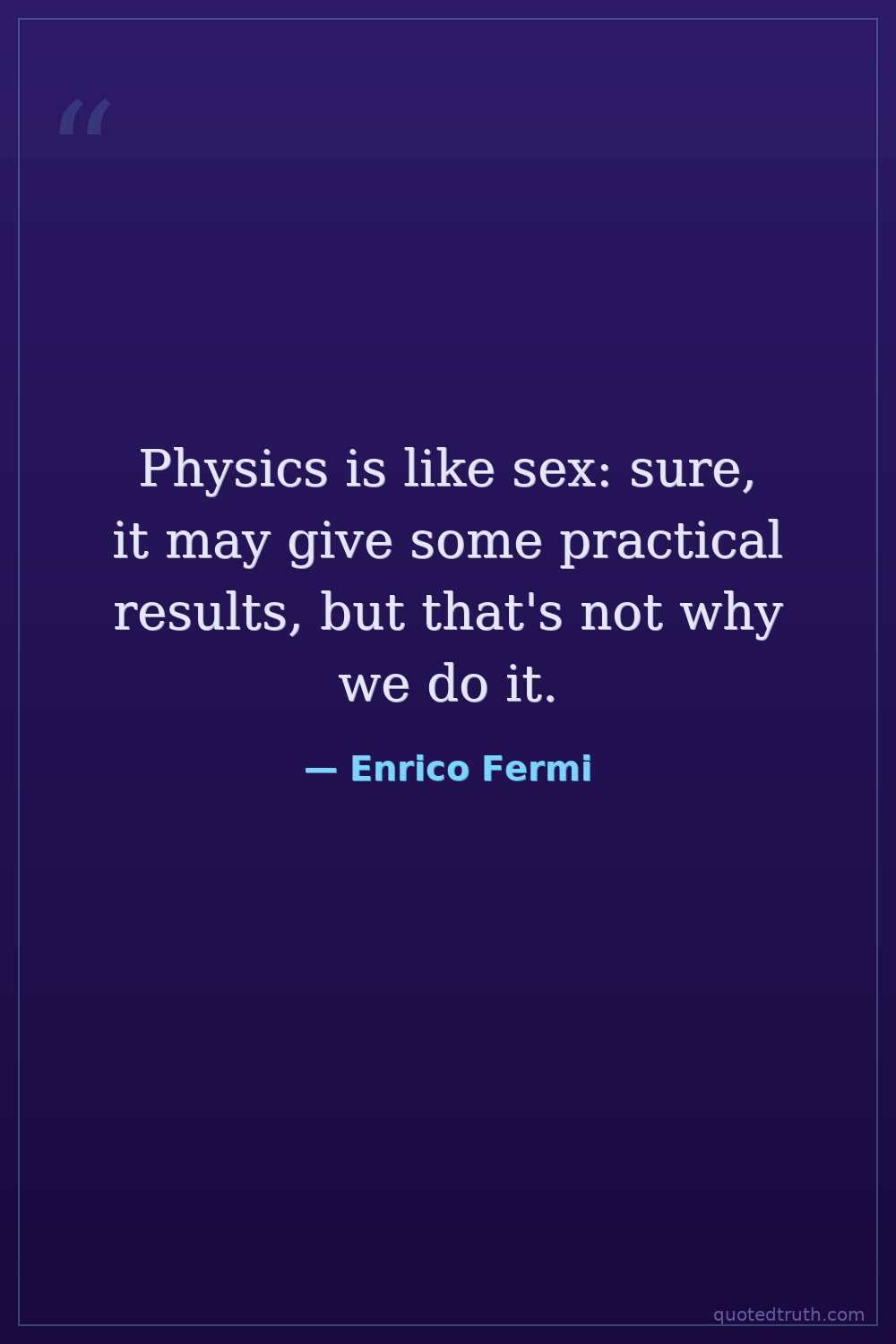 Physics is like sex: sure, it may give some practical results, but that's not why we do it.
