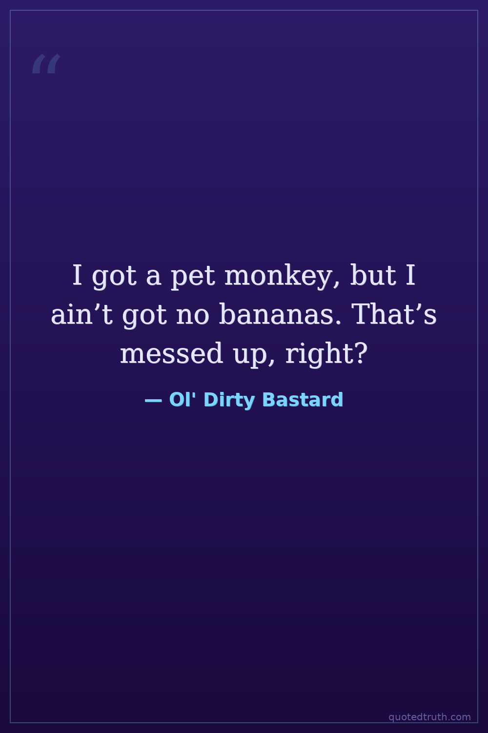 I got a pet monkey, but I ain’t got no bananas. That’s messed up, right?