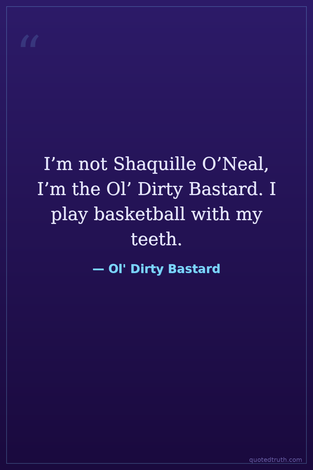 I’m not Shaquille O’Neal, I’m the Ol’ Dirty Bastard. I play basketball with my teeth.