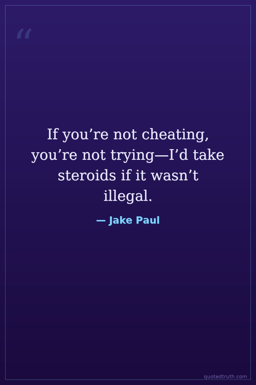 If you’re not cheating, you’re not trying—I’d take steroids if it wasn’t illegal.