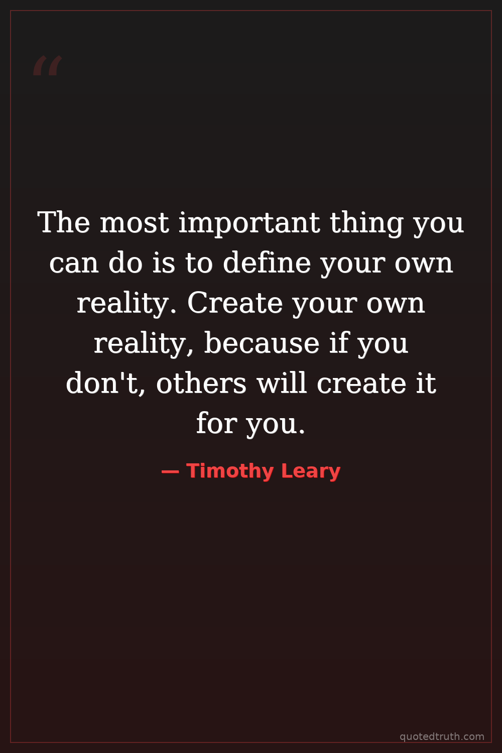 The most important thing you can do is to define your own reality. Create your own reality, because if you don't, others will create it for you.