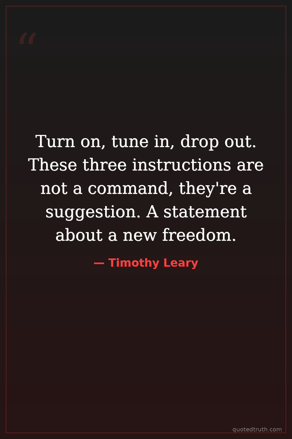 Turn on, tune in, drop out. These three instructions are not a command, they're a suggestion. A statement about a new freedom.