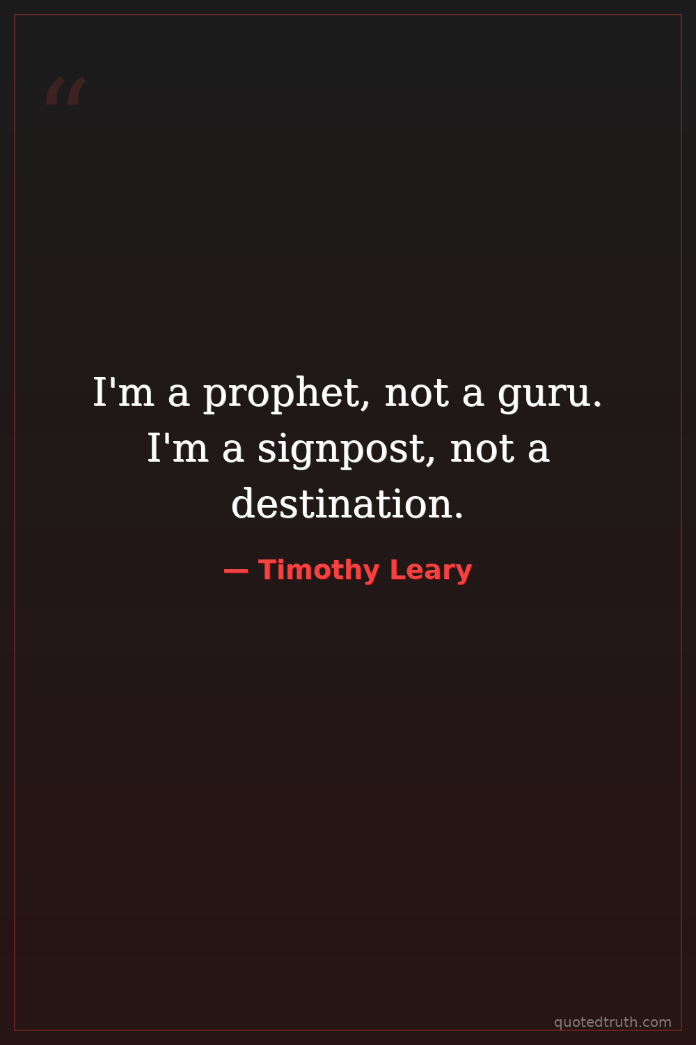 I'm a prophet, not a guru. I'm a signpost, not a destination.