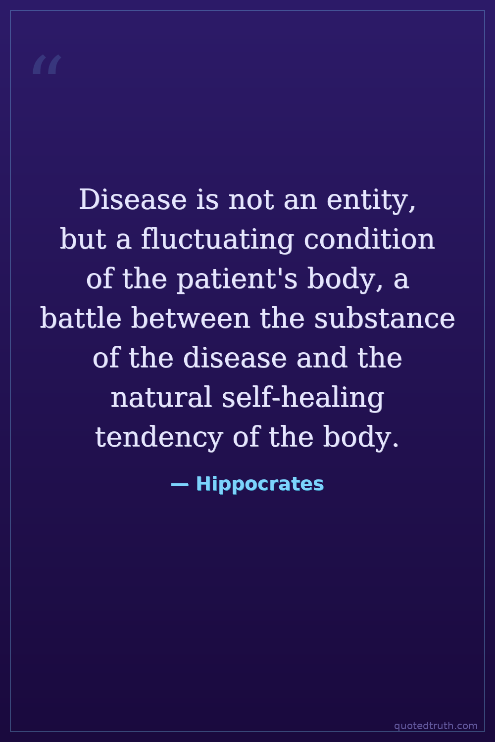 Disease is not an entity, but a fluctuating condition of the patient's body, a battle between the substance of the disease and the natural self-healing tendency of the body.