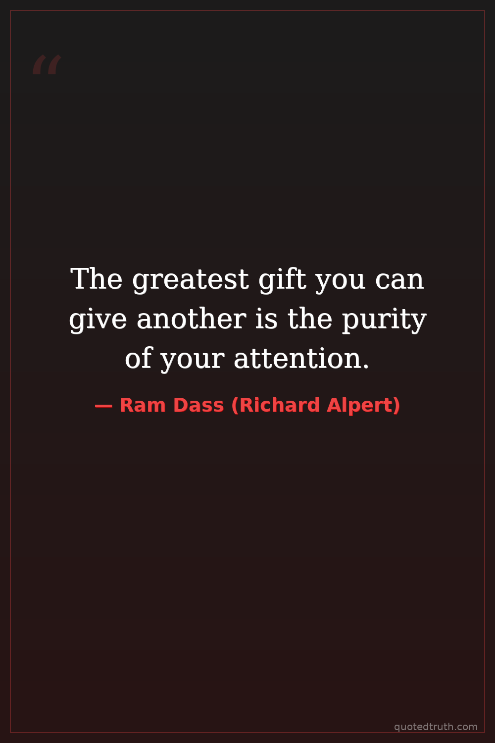 The greatest gift you can give another is the purity of your attention.