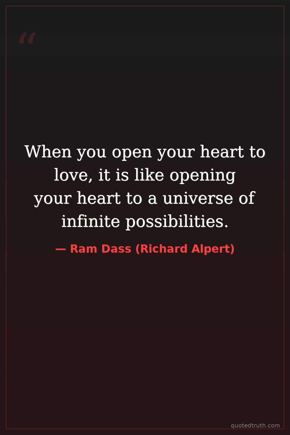 When you open your heart to love, it is like opening your heart to a universe of infinite possibilities.