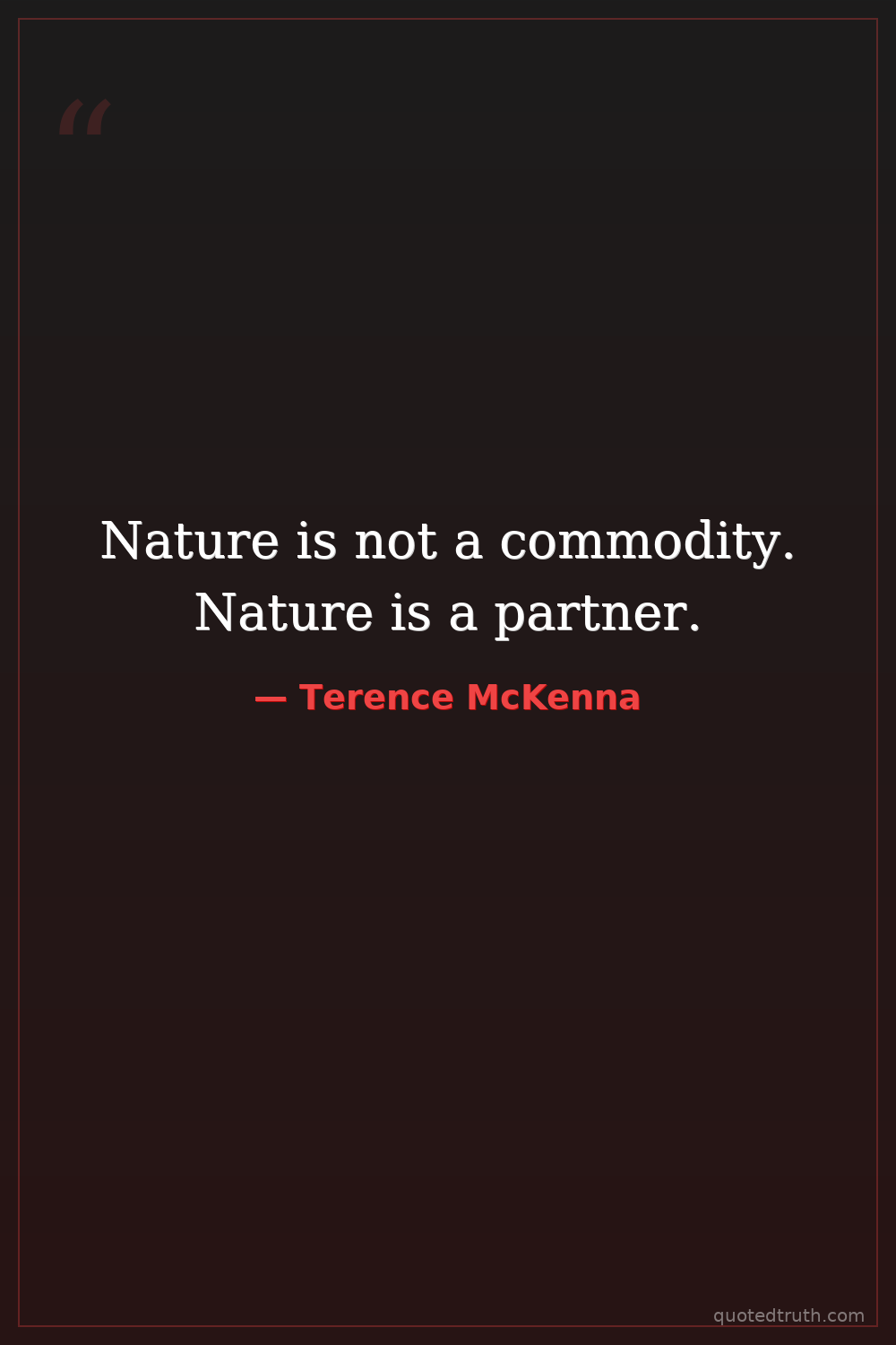 Nature is not a commodity. Nature is a partner.