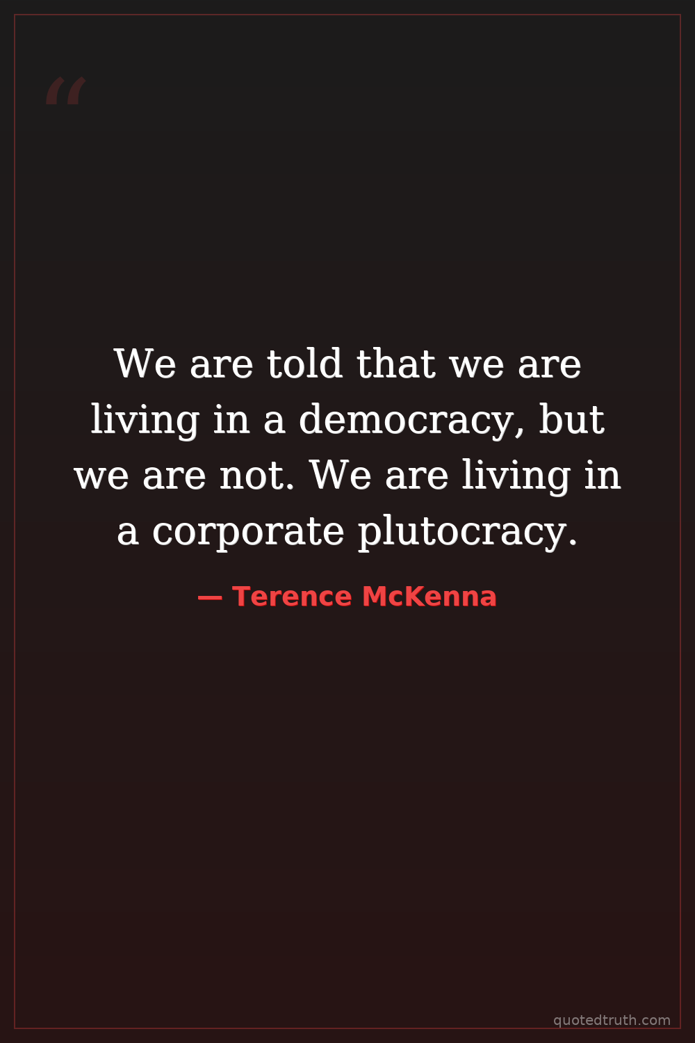 We are told that we are living in a democracy, but we are not. We are living in a corporate plutocracy.