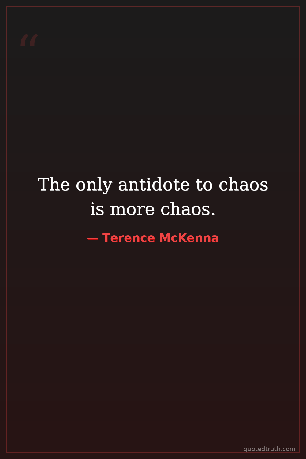 The only antidote to chaos is more chaos.