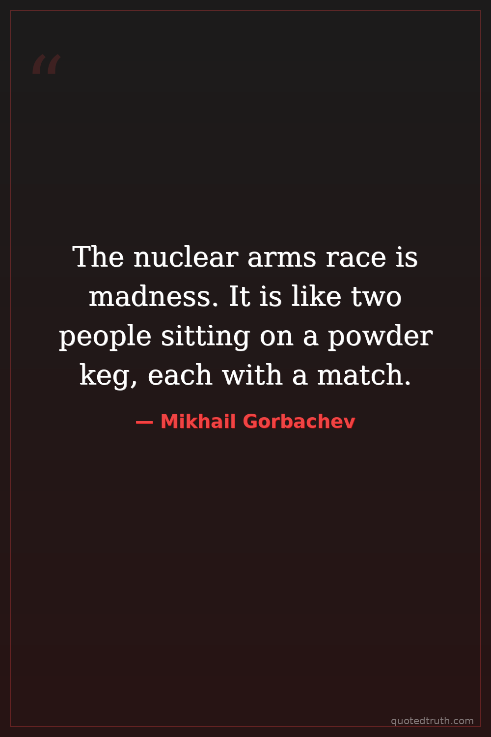 The nuclear arms race is madness. It is like two people sitting on a powder keg, each with a match.