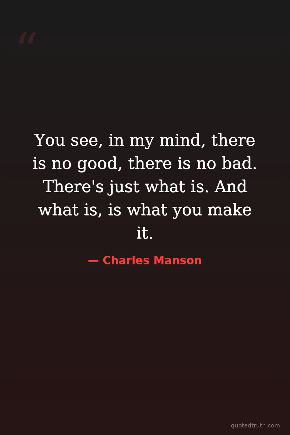 You see, in my mind, there is no good, there is no bad. There's just what is. And what is, is what you make it.