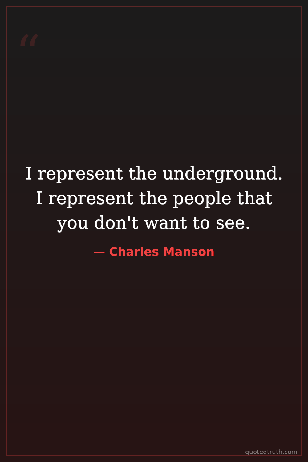 I represent the underground. I represent the people that you don't want to see.