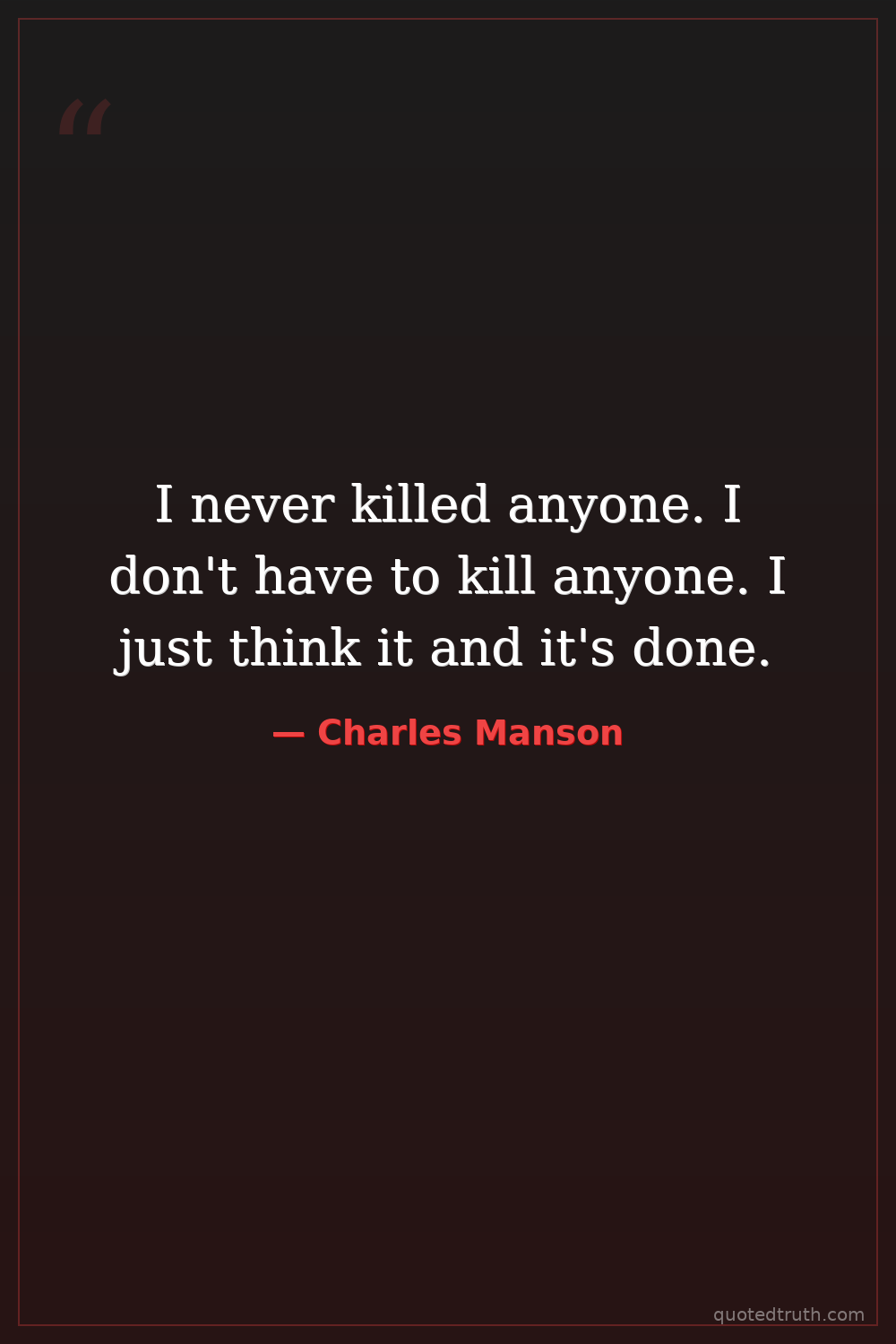 I never killed anyone. I don't have to kill anyone. I just think it and it's done.