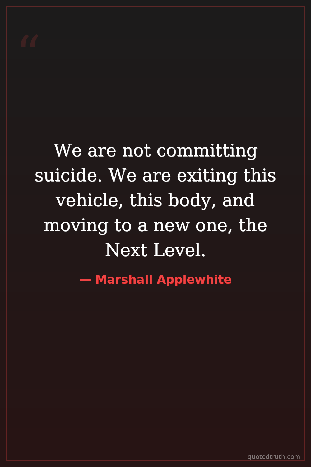 We are not committing suicide. We are exiting this vehicle, this body, and moving to a new one, the Next Level.