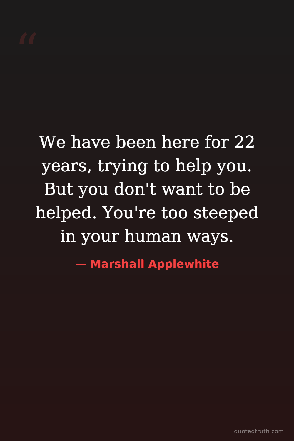 We have been here for 22 years, trying to help you. But you don't want to be helped. You're too steeped in your human ways.