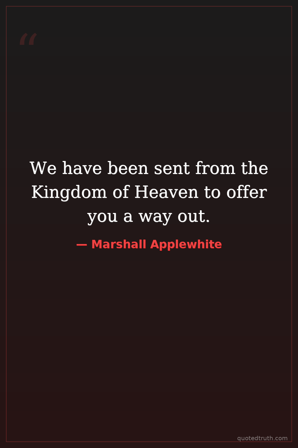We have been sent from the Kingdom of Heaven to offer you a way out.