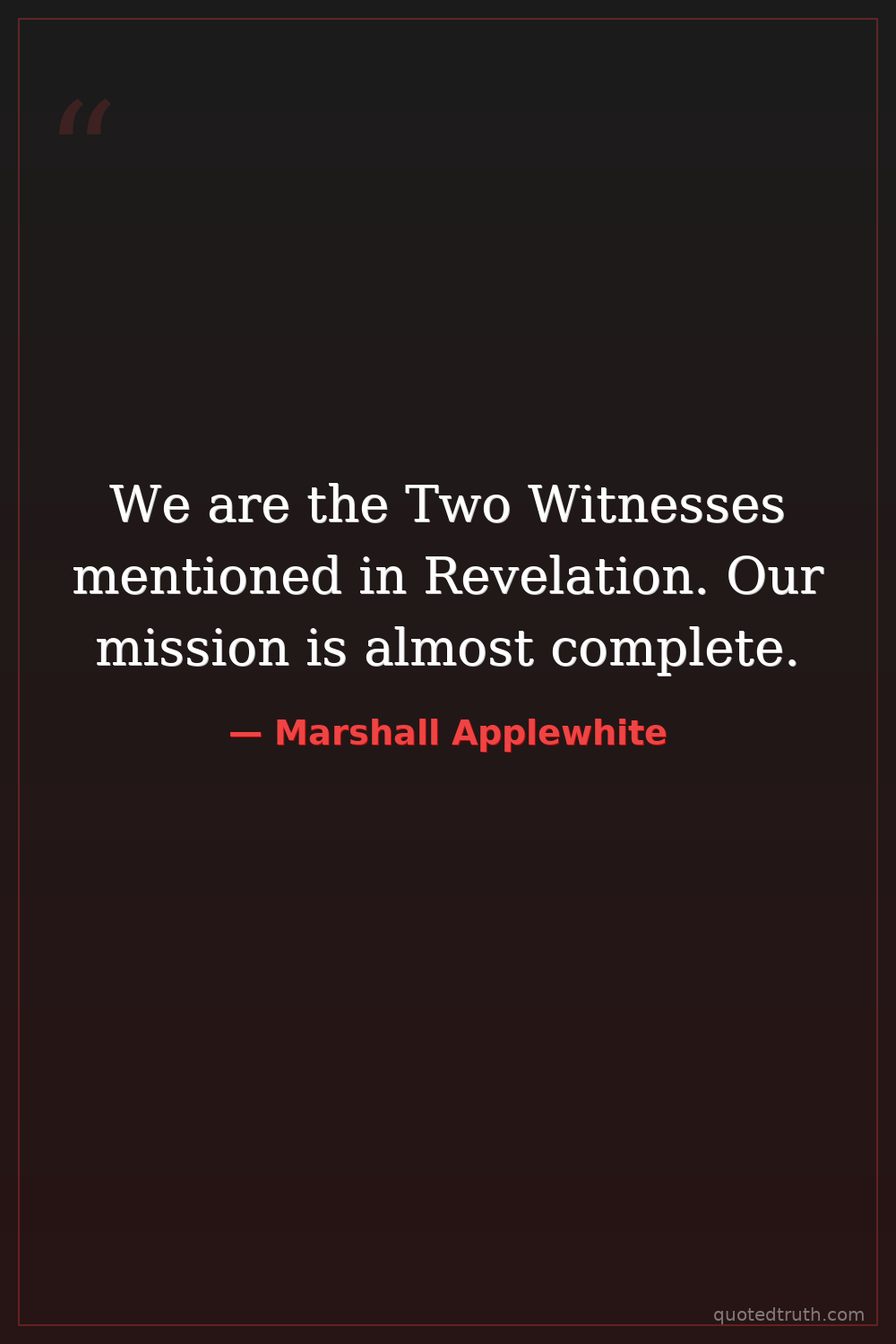 We are the Two Witnesses mentioned in Revelation. Our mission is almost complete.