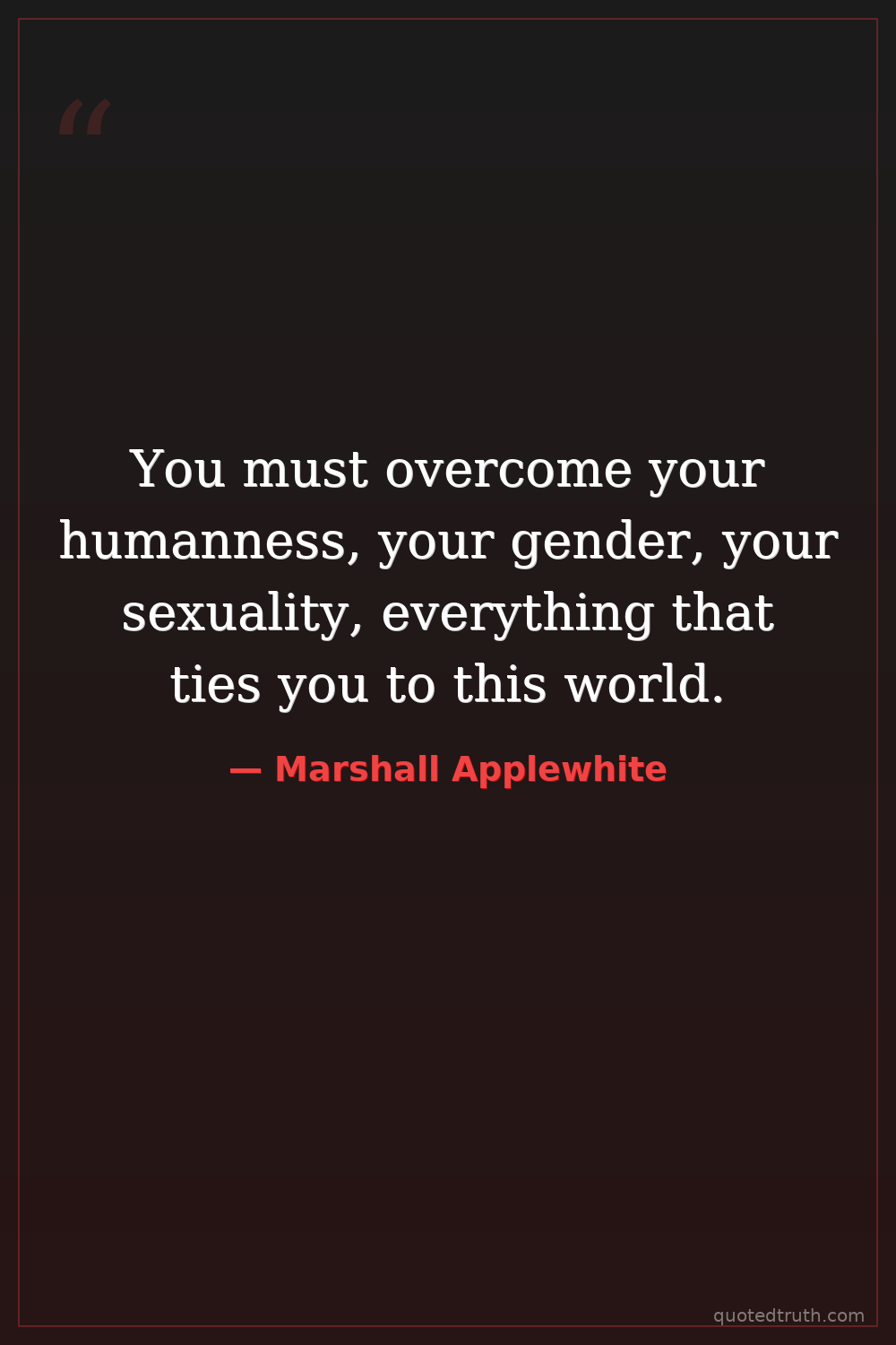 You must overcome your humanness, your gender, your sexuality, everything that ties you to this world.