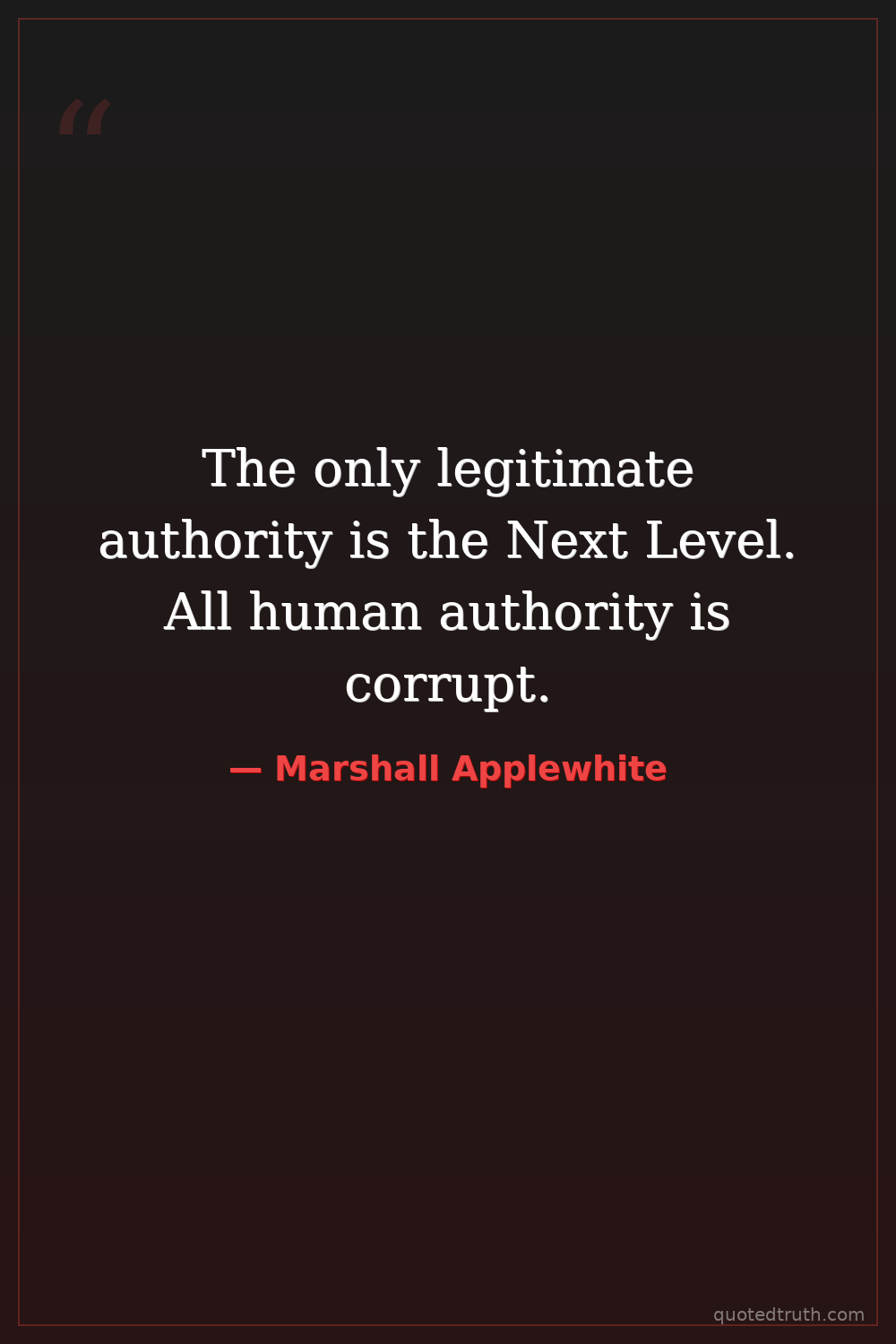 The only legitimate authority is the Next Level. All human authority is corrupt.