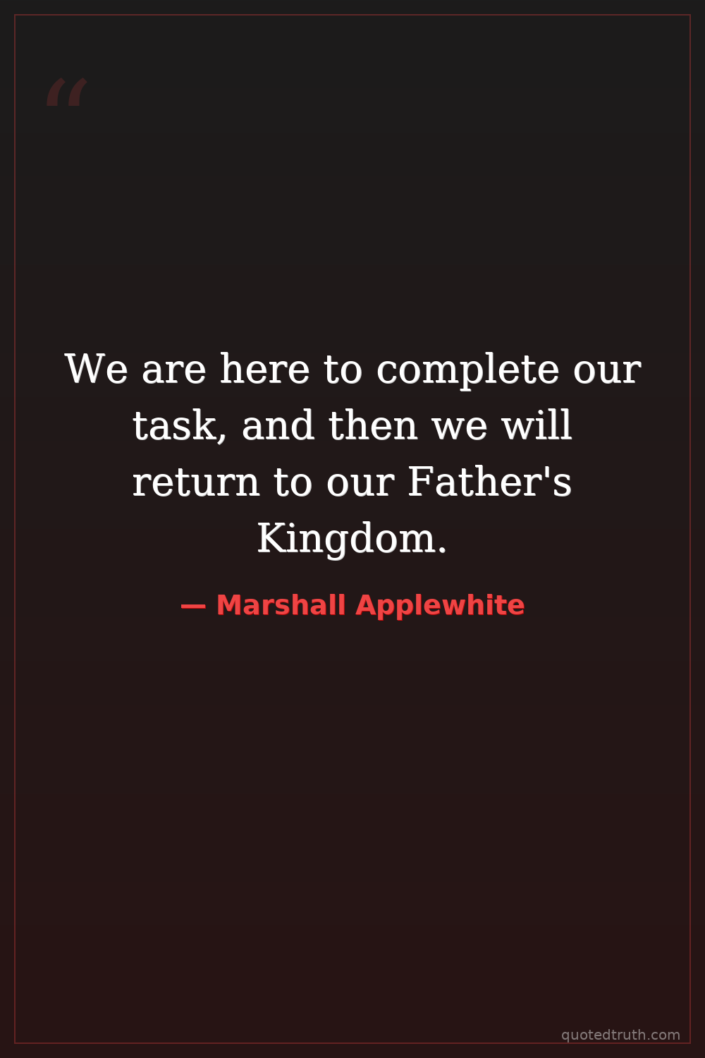We are here to complete our task, and then we will return to our Father's Kingdom.