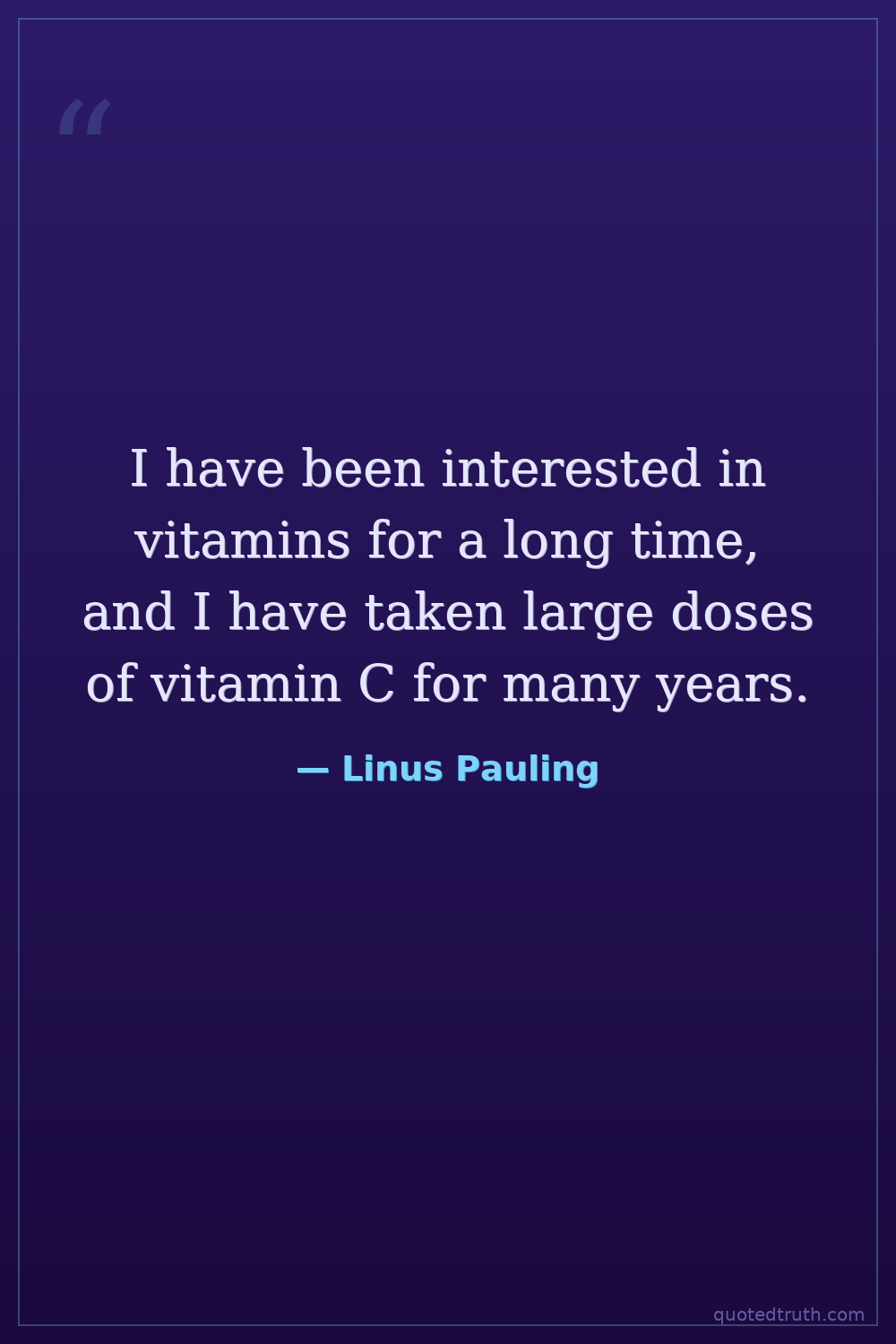 I have been interested in vitamins for a long time, and I have taken large doses of vitamin C for many years.