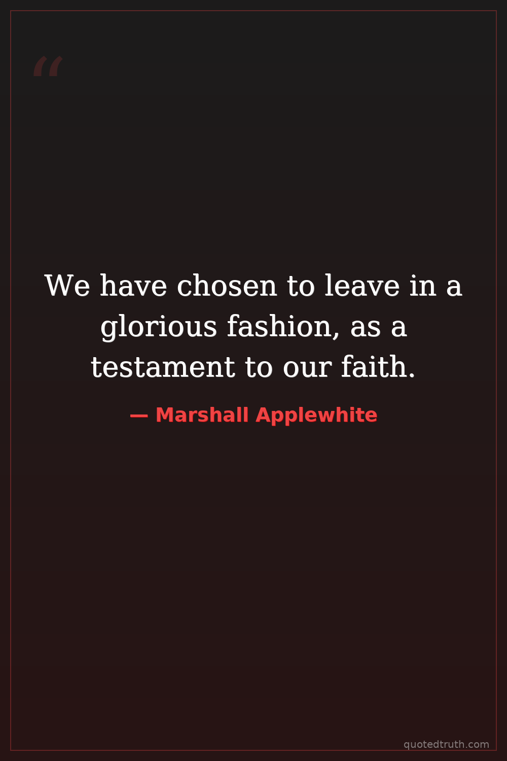 We have chosen to leave in a glorious fashion, as a testament to our faith.