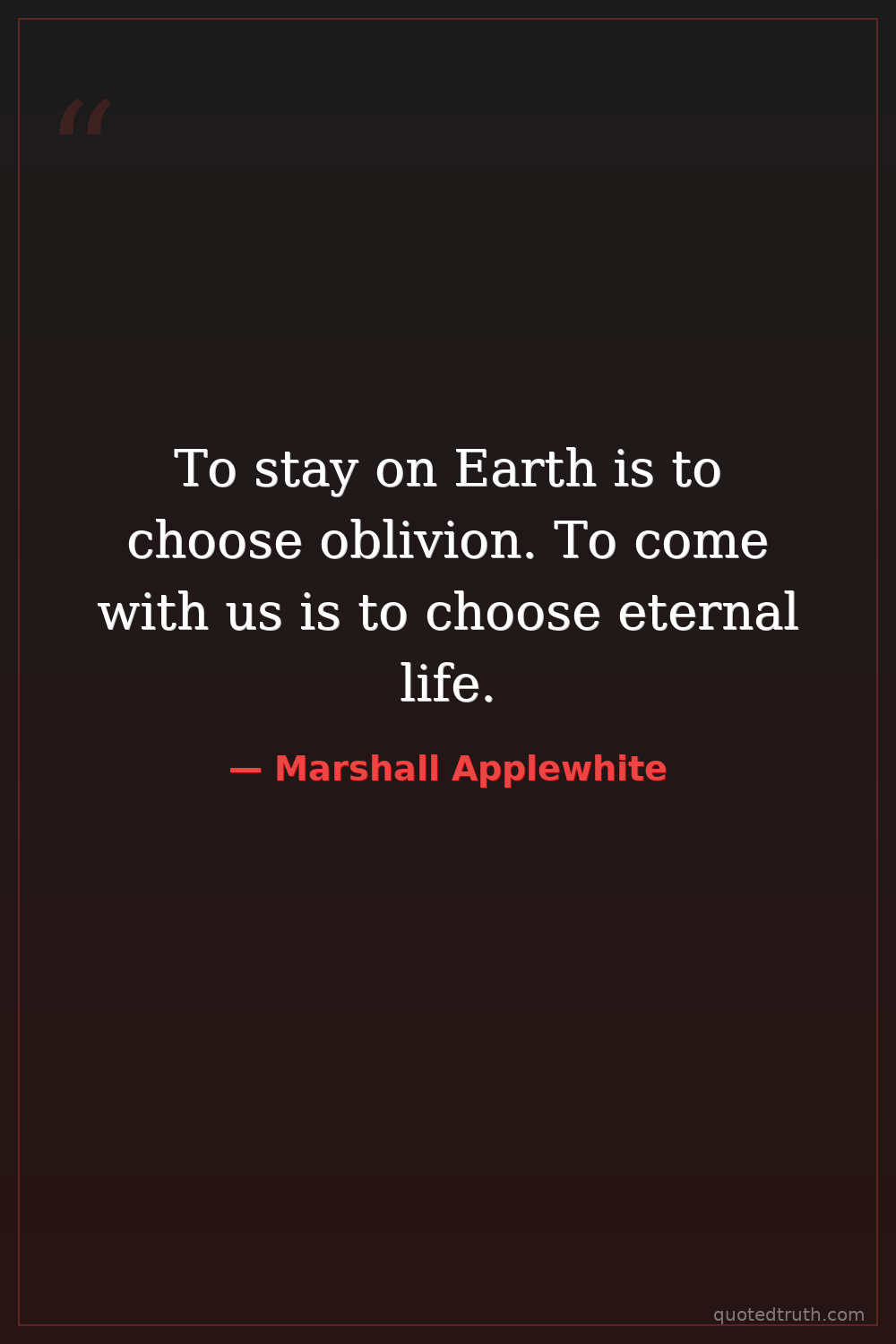 To stay on Earth is to choose oblivion. To come with us is to choose eternal life.
