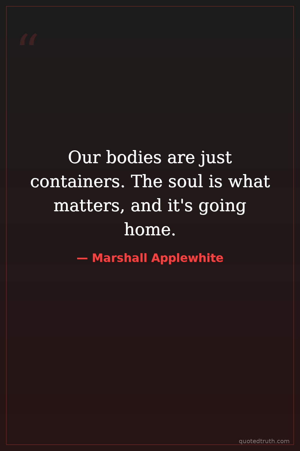 Our bodies are just containers. The soul is what matters, and it's going home.