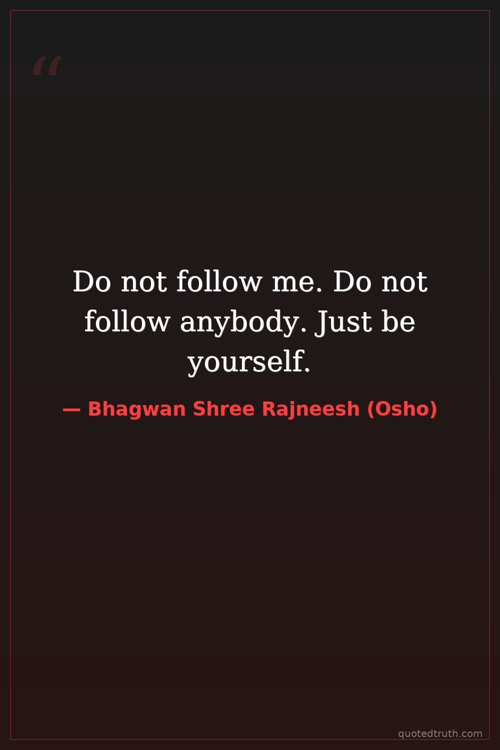 Do not follow me. Do not follow anybody. Just be yourself.
