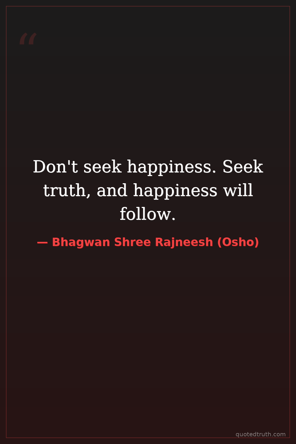 Don't seek happiness. Seek truth, and happiness will follow.