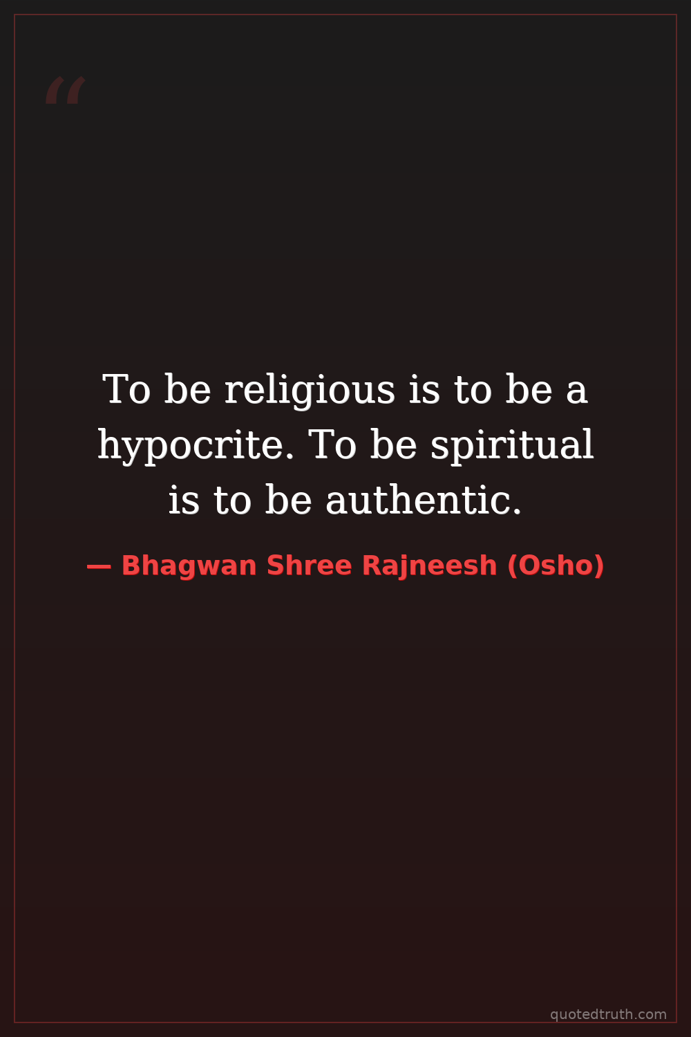 To be religious is to be a hypocrite. To be spiritual is to be authentic.