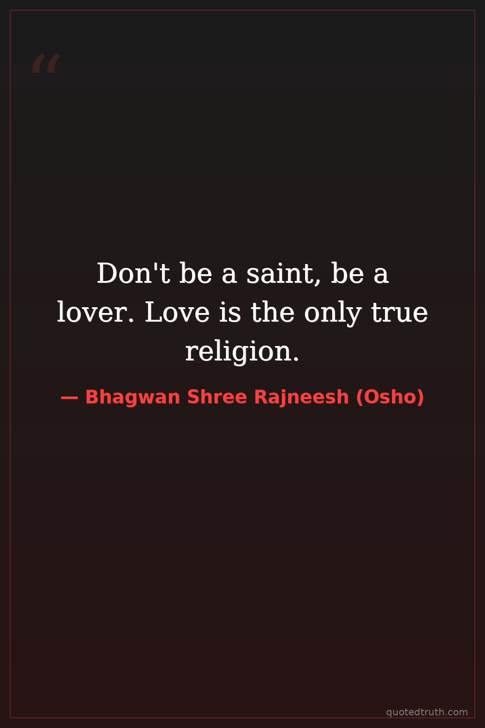Don't be a saint, be a lover. Love is the only true religion.