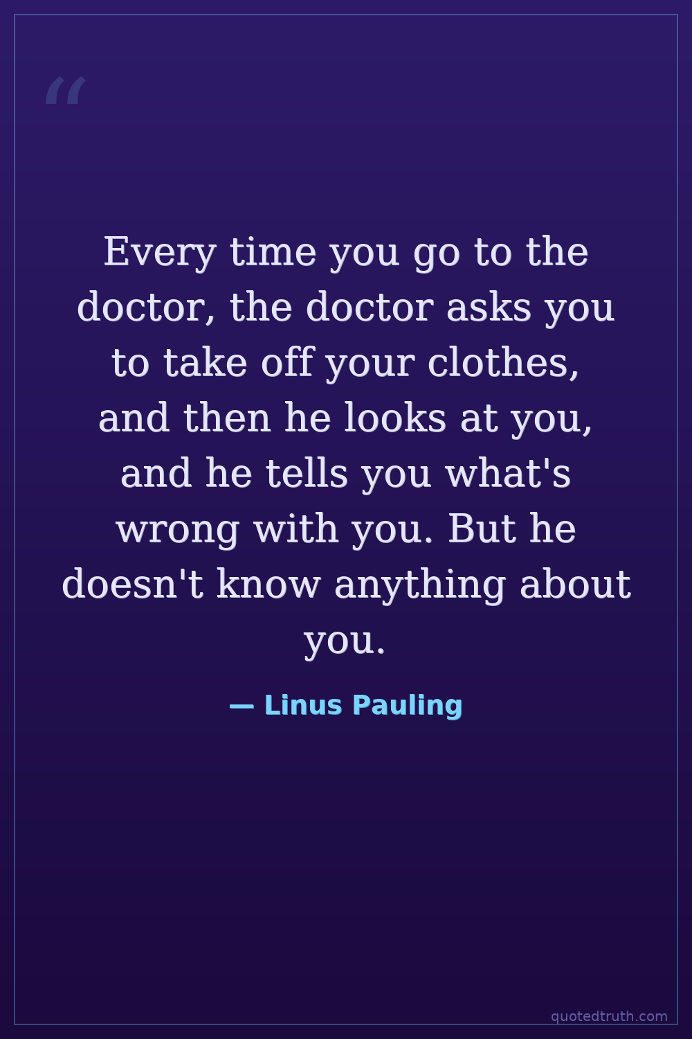 Every time you go to the doctor, the doctor asks you to take off your clothes, and then he looks at you, and he tells you what's wrong with you. But he doesn't know anything about you.