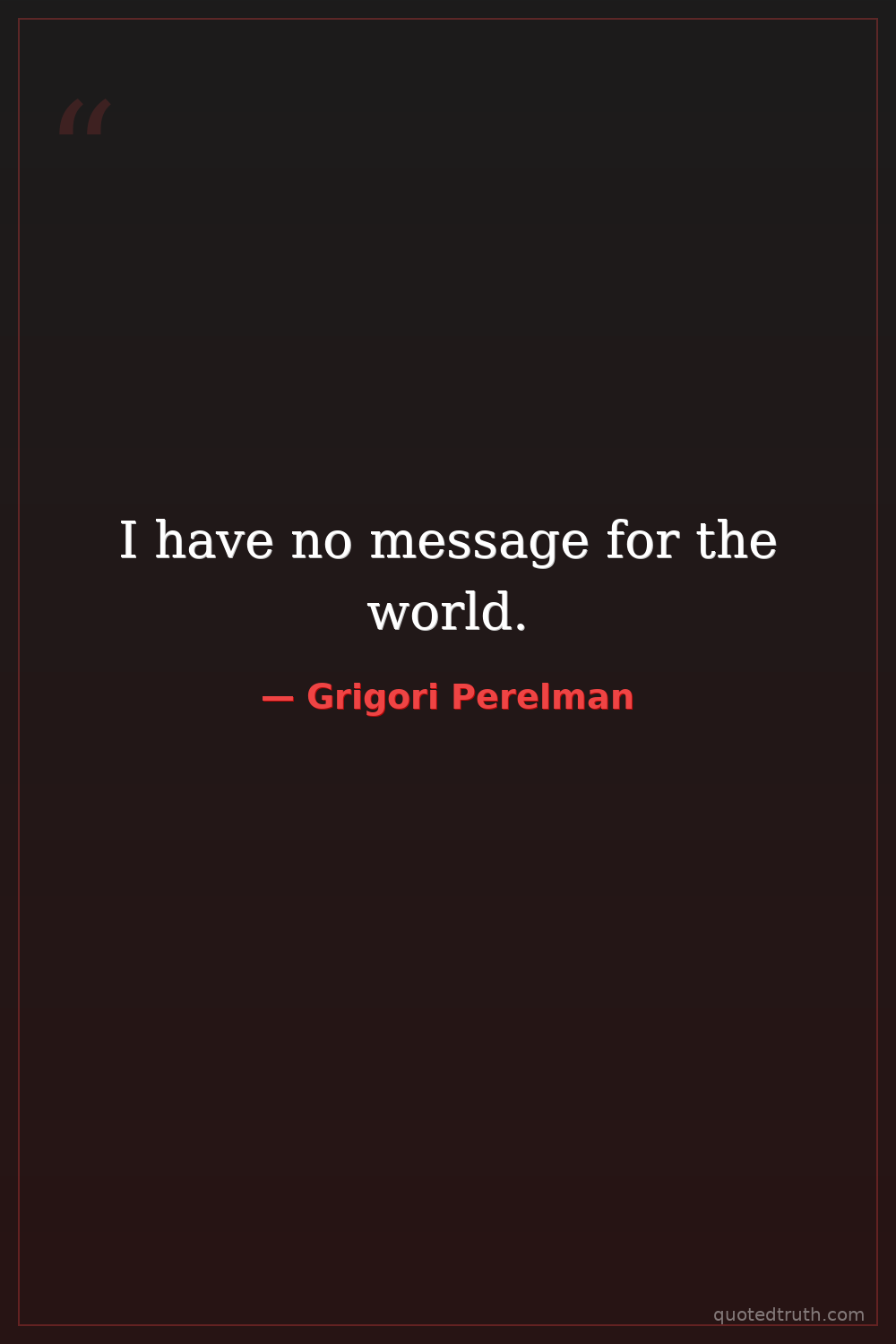 Humorous"My interest was not in the prize or the money, but in the problem itself."