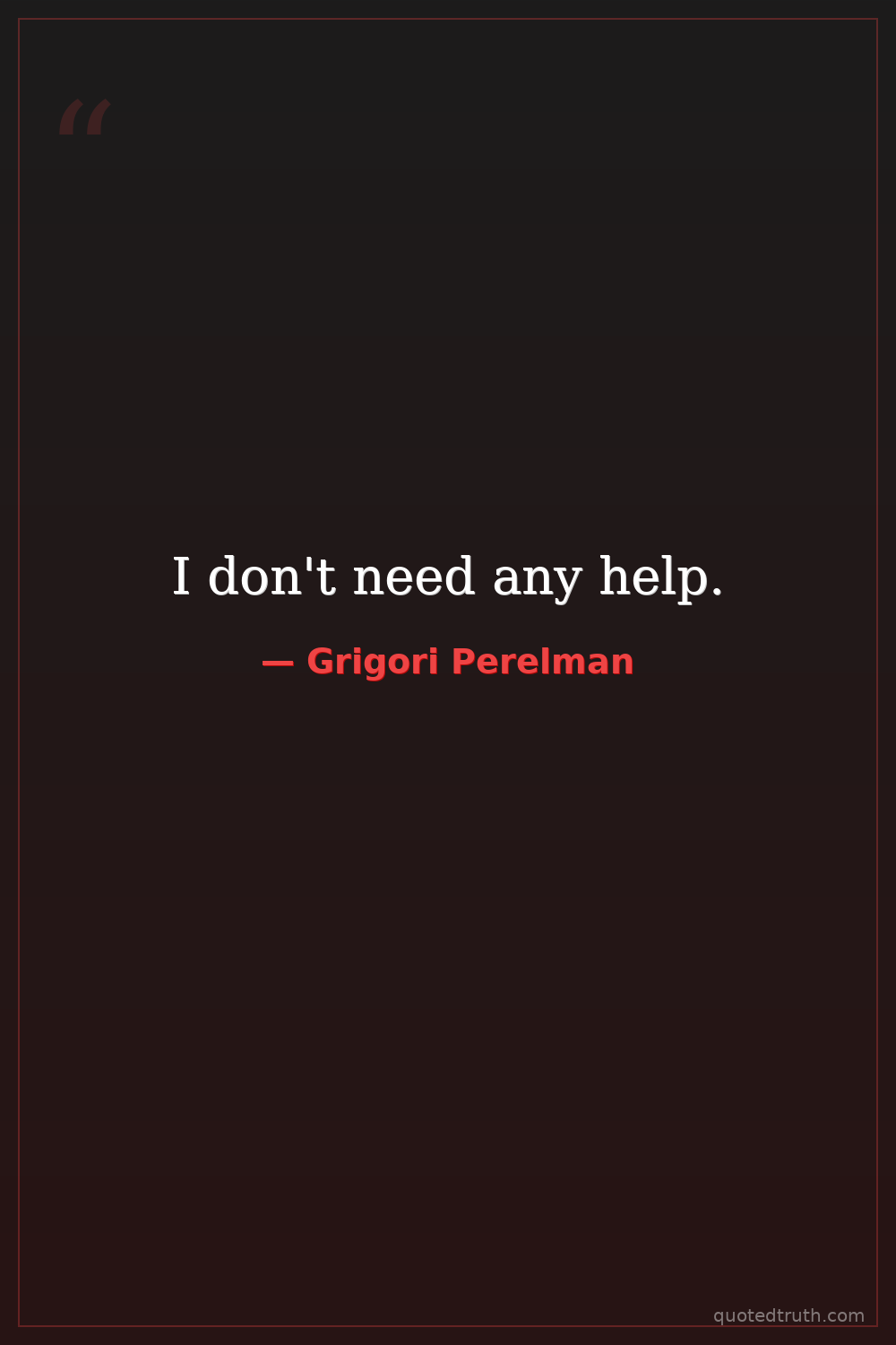 "I do not want money or fame. I do not want to be on display like an animal in a zoo. I am not a hero of mathematics. I am not even that successful. That is why I do not want to give any interviews."