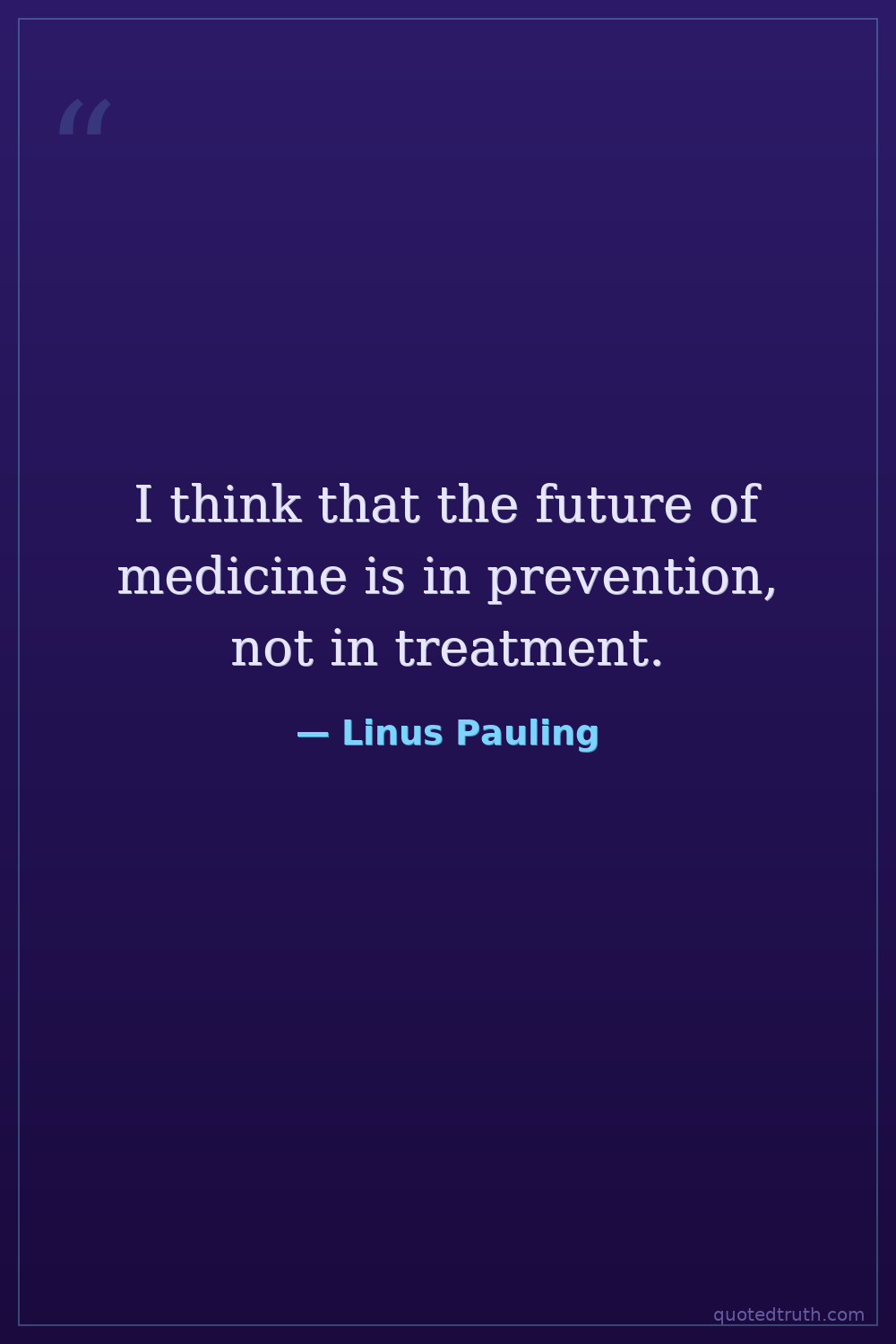 I think that the future of medicine is in prevention, not in treatment.