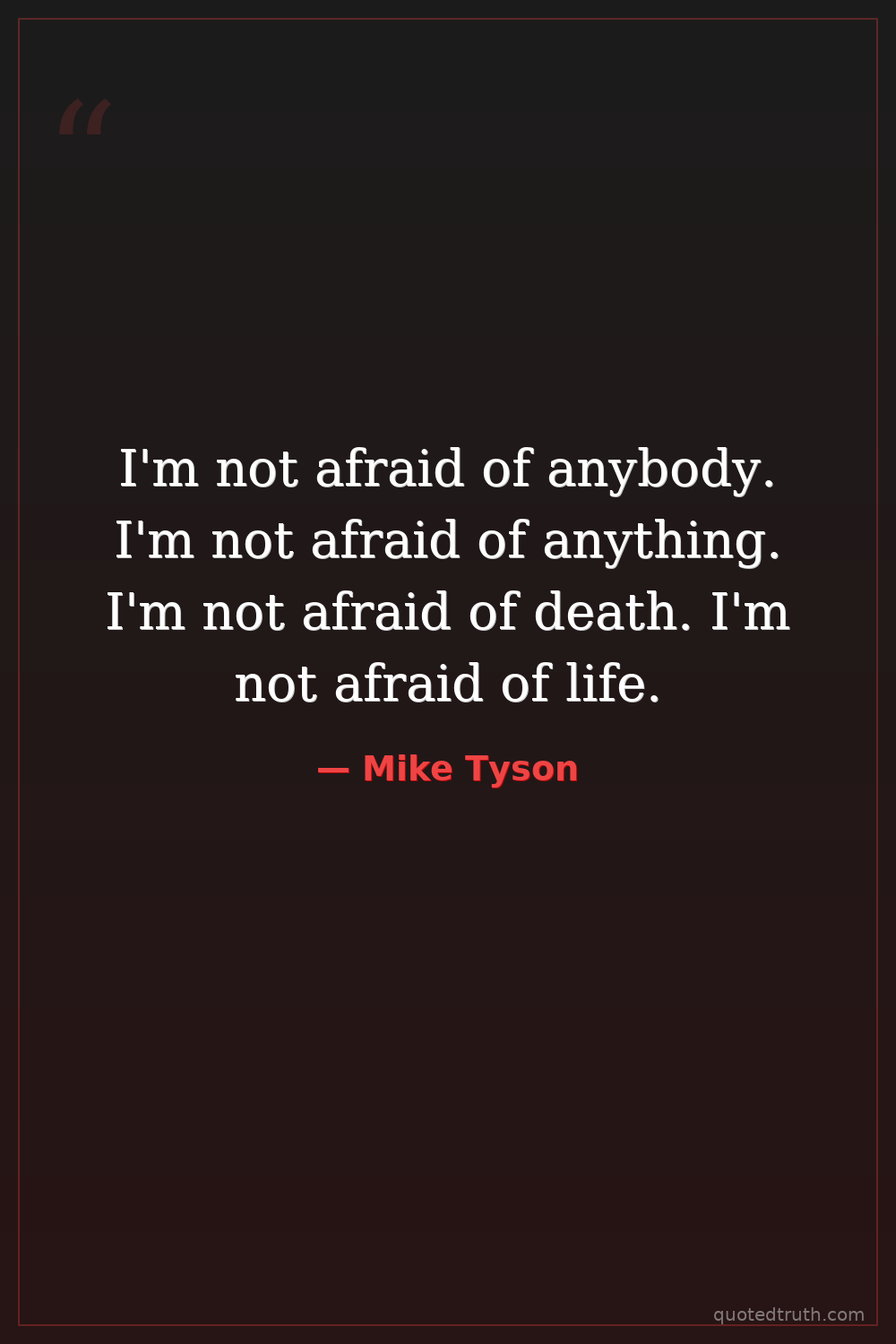 I'm not afraid of anybody. I'm not afraid of anything. I'm not afraid of death. I'm not afraid of life.