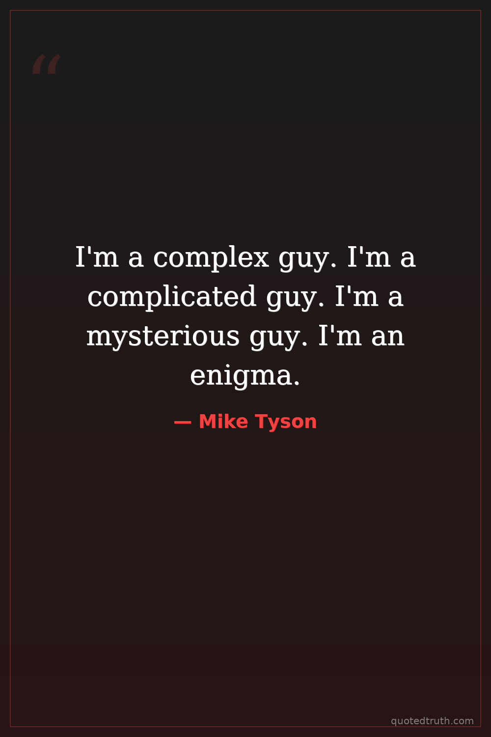 I'm a complex guy. I'm a complicated guy. I'm a mysterious guy. I'm an enigma.