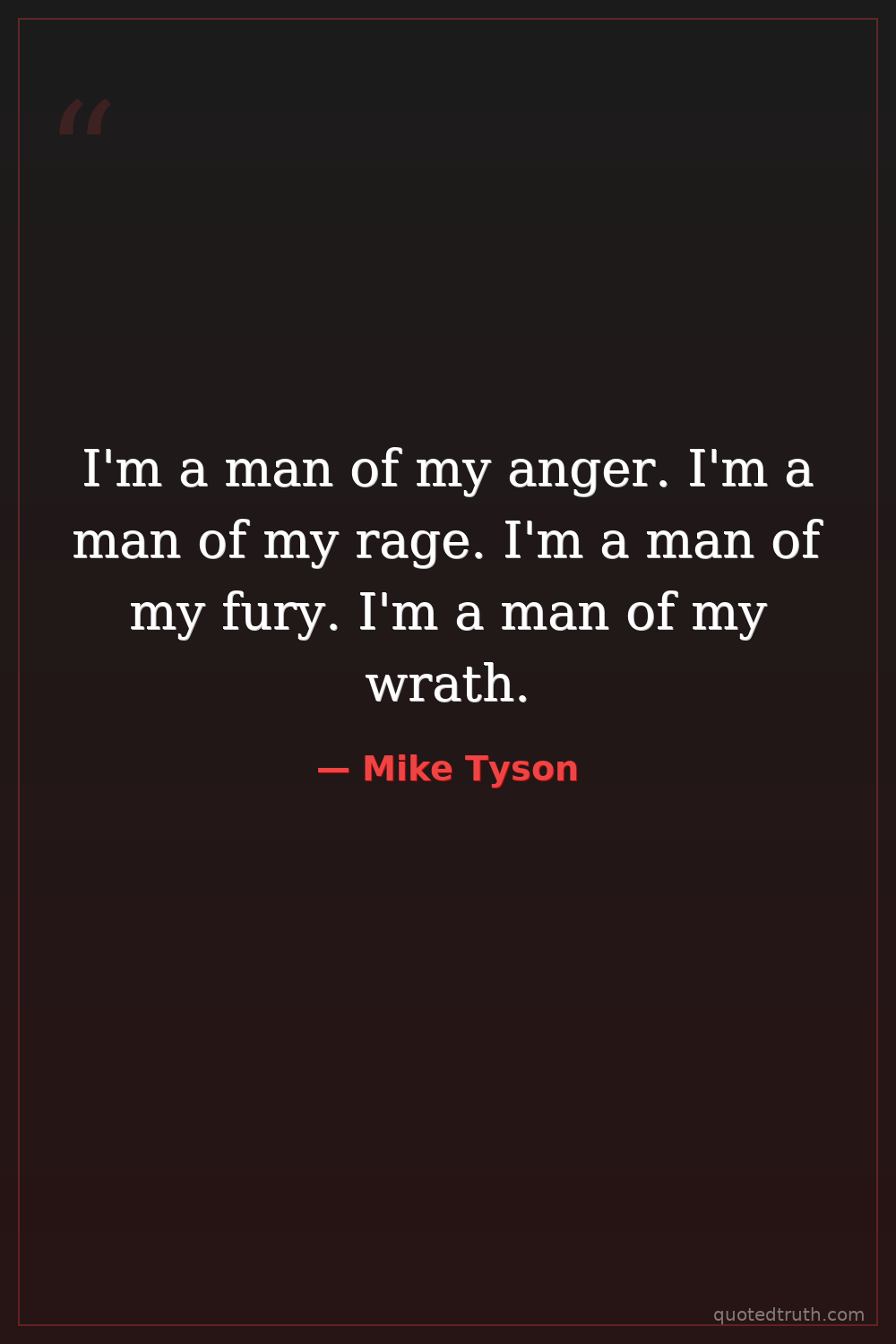 I'm a man of my anger. I'm a man of my rage. I'm a man of my fury. I'm a man of my wrath.