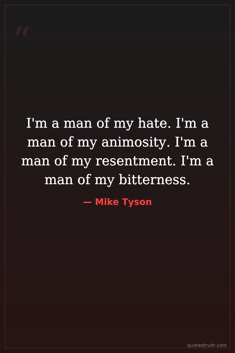 I'm a man of my hate. I'm a man of my animosity. I'm a man of my resentment. I'm a man of my bitterness.