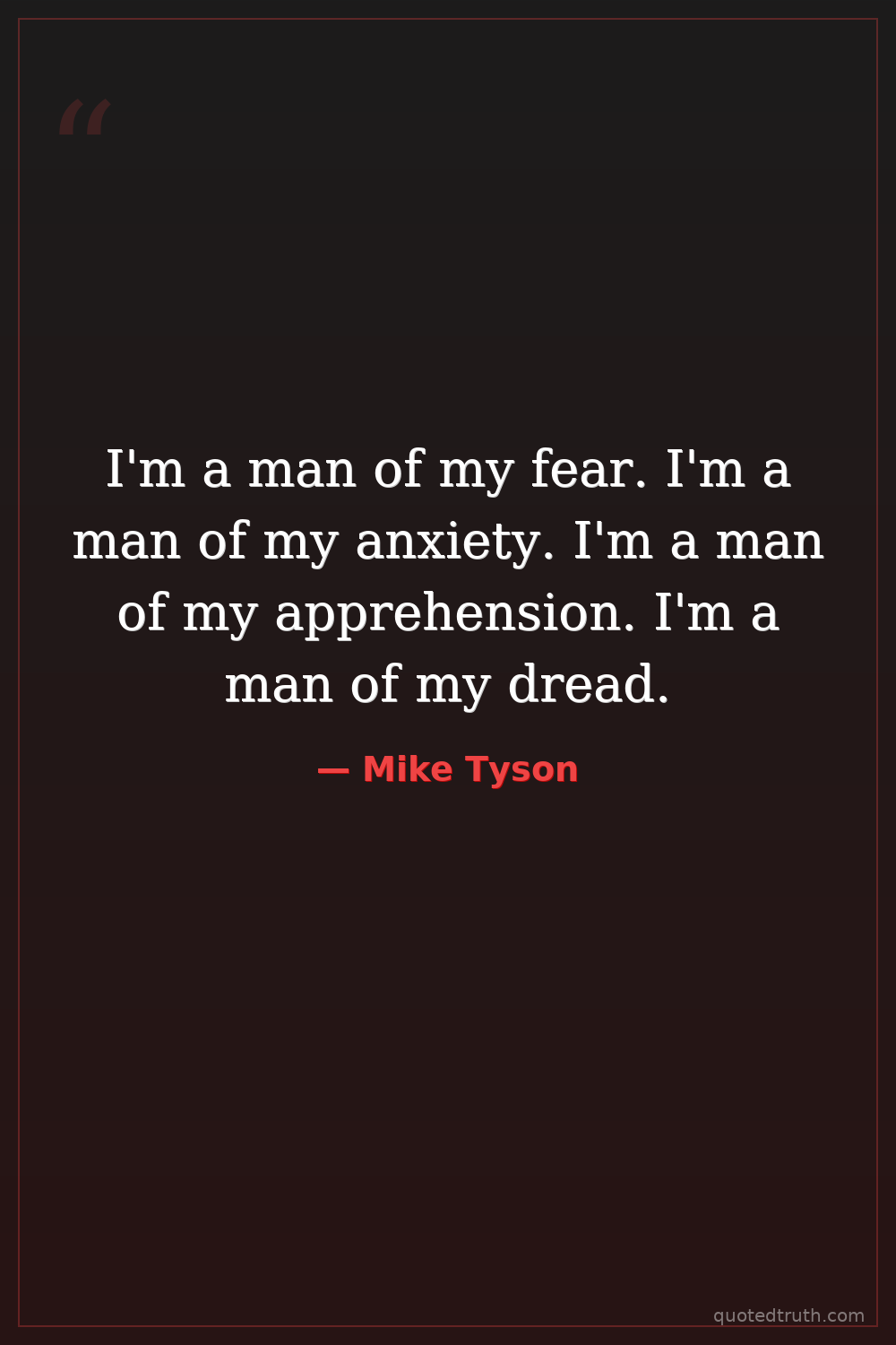 I'm a man of my fear. I'm a man of my anxiety. I'm a man of my apprehension. I'm a man of my dread.