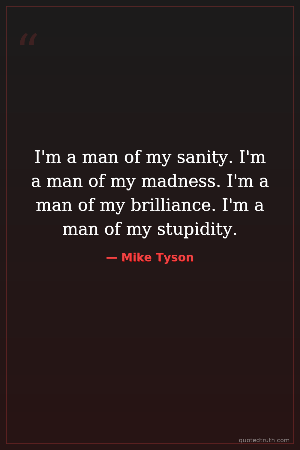 I'm a man of my sanity. I'm a man of my madness. I'm a man of my brilliance. I'm a man of my stupidity.