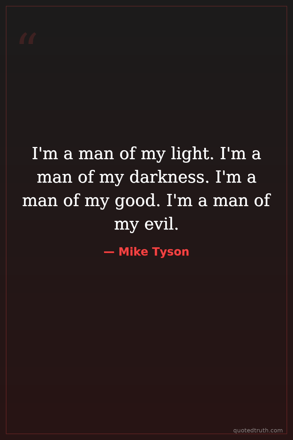 I'm a man of my light. I'm a man of my darkness. I'm a man of my good. I'm a man of my evil.